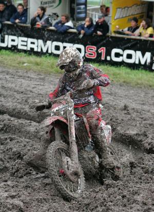 Coppins looked to have the hole-shot going into the first turn and had the advantage of clear vision but a corner later the CAS Honda rider got stuck in a deep rut and lost his lead. Coppins managed to free his bike and get going but was seven positions down the field with a whole lot of work ahead of him. He was among many riders to taste the Gaildorf mud and after the kiwi had fallen for the second time he managed to settle into his own rhythm and claw back his lost positions to salvage fifth place by the end of the race.