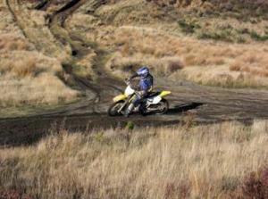 Here's how the ride goes. 5 km of rolling grass land with humps, bumps and jumps, one km of pine trees, 10 km of tussocky tank track trails, across a sandy wasteland then up and around the foothills of Mount Ruapehu, around Ghost Bush, over and across about 10 waddies (dry creek beds), You think you are riding in a Motocross movie filmed in California, back down through the Rangipo Desert, then back through the tussock land winding along the bank on the Whangaehu River to strike another 5 clicks of rolling grass land. In for a quick drink then do it all again!