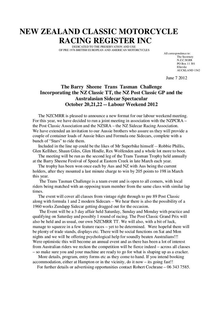 Te Kuiti Sprints, RESULTS